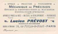 En 1900, de retour en France après son aventure militaire de la guerre des Boers en Afrique du Sud, et un bref passage aux « Chemins de Fer du Nord », Lucien Prévost rejoint un des pionniers du cinématographe, Charles Pathé, pour diriger à Vincennes le bureau d'études de Pathé Frères, premier géant français du film depuis l'invention de Lumière. Après quelques années il fonde sa propre entreprise de machines pour le cinématographe. Il avait fait l'acquisition d'un des premiers Cinématographes Auguste et Louis Lumière, le 1er modèle construit par Jules Carpentier, Ingénieur-Constructeur à Paris, (l'inventeur de l'appareil photo « jumelle »), avant qu'il ne construise lui-même des cinématographes chez Pathé Frères ou à son propre compte. Cette caméra - projecteur est visible au Musée Photo de Graçay.